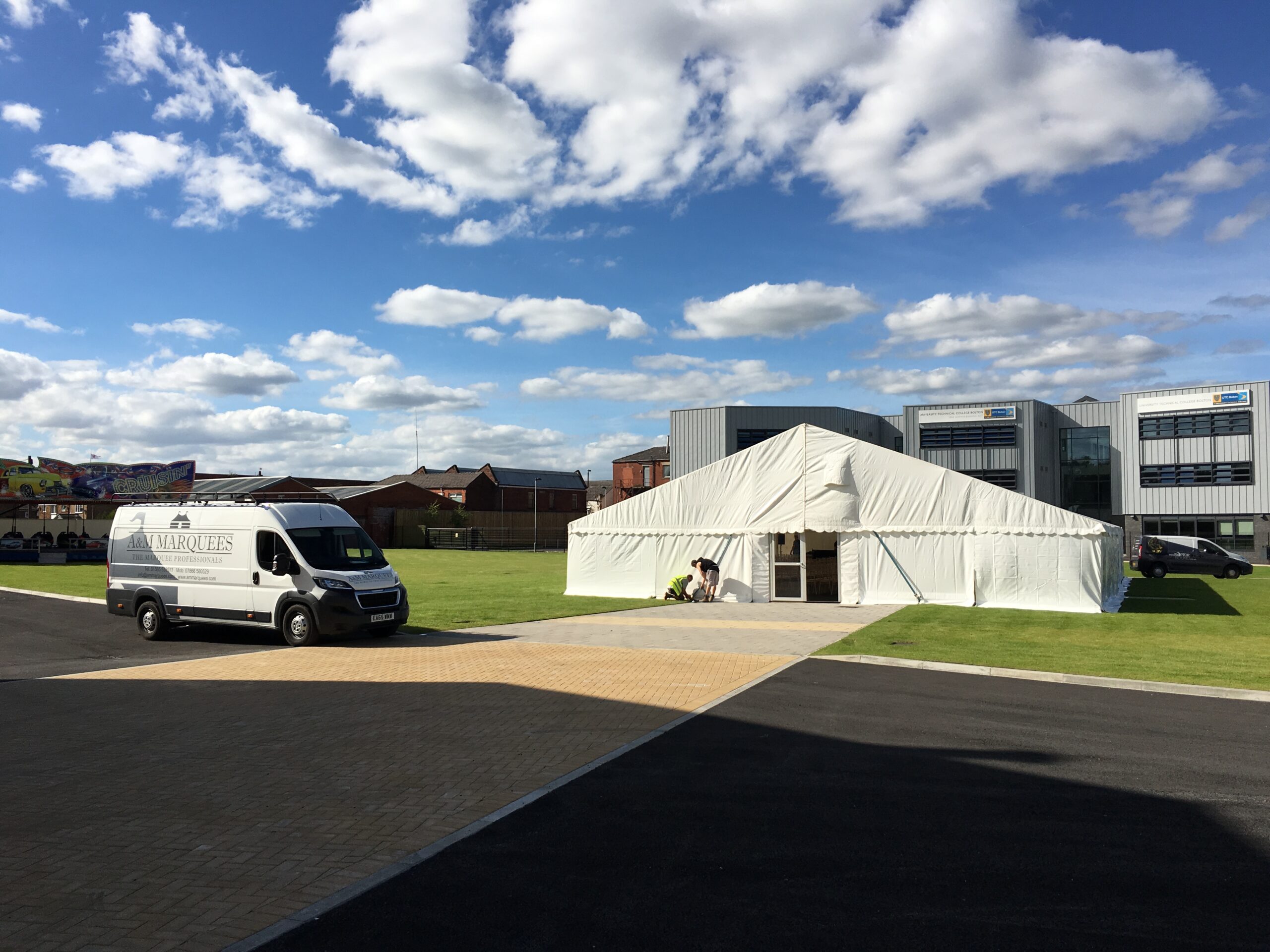 A & M Marquees supplied this 15m clearspan marquee to Bolton University for a fresher induction along with stage, floor, carpet and chairs.