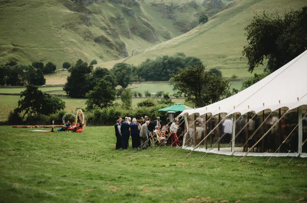 Castleton in the Hope Valley, in Derbyshire, was the location for this gorgeous wedding with its traditional pole marquee. To complete the look Mark and the team, at A&M Marquees, supplied oak cross back chairs, vintage trestle tables and even a dance floor in vintage pine!